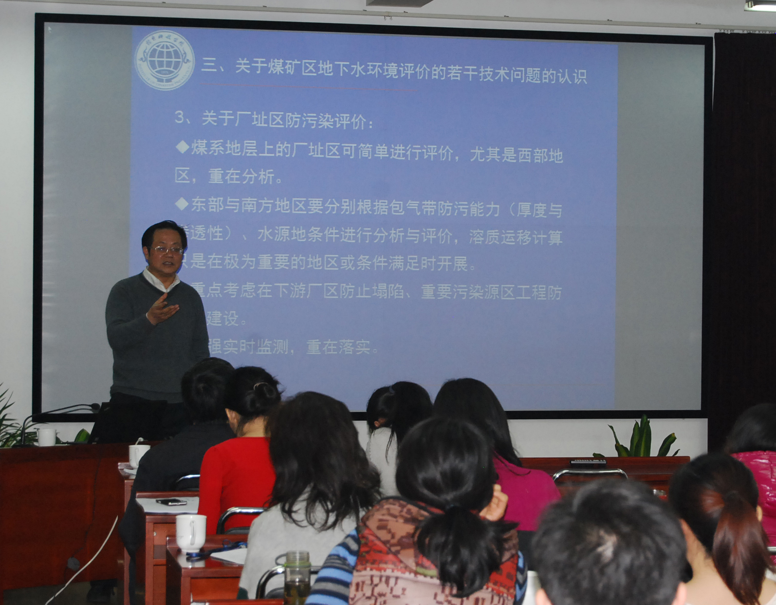 迟宝明教授的报告生动形象、深入浅出,有很强的针对性和实用价值,不仅使与会人员进一步丰富了煤矿区地下水环境与评价方面的知识,对他们解决实际工作中遇到的困难与问题有很重要的指导意义;同时突显出学院地下水科学与工程专业在煤矿区地下水环境与评价等社会服务方面的重要应用意义,将进一步促进学院与环保部相关部门的合作与交流,扩大学院的社会影响力。