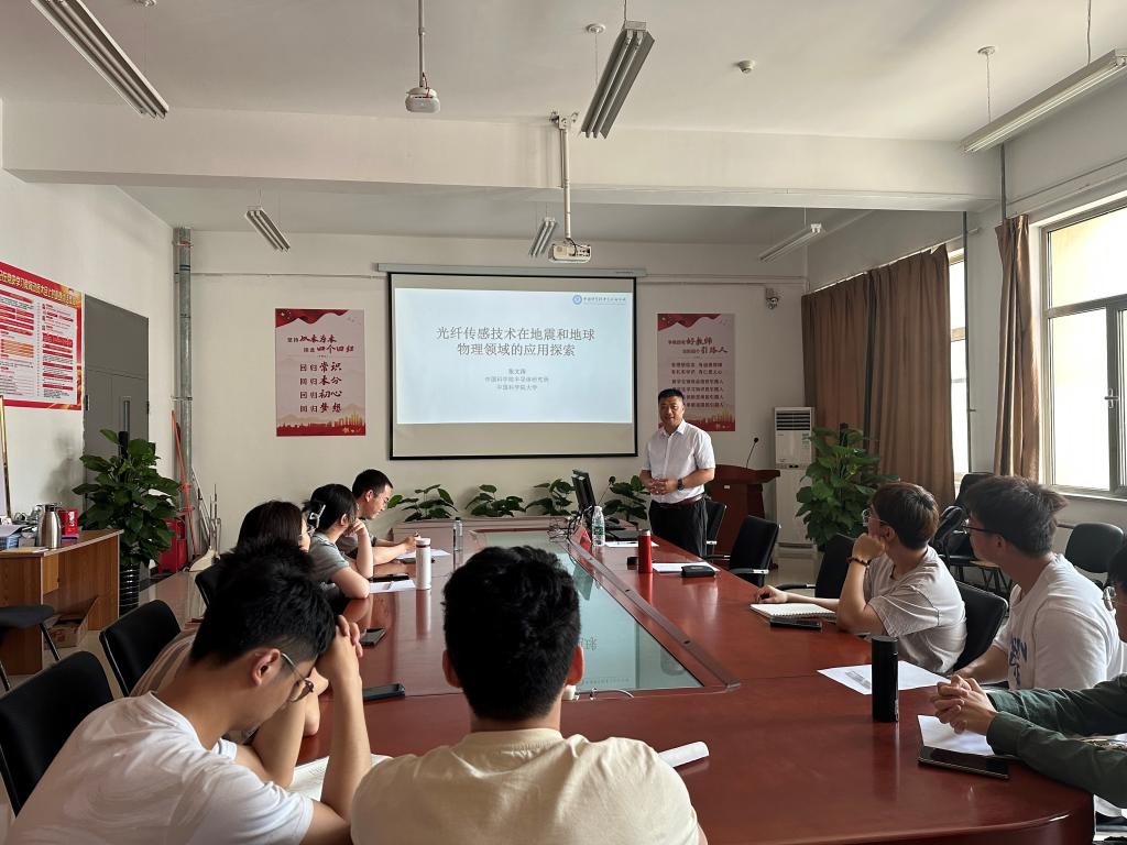 张文涛老师首先介绍了光纤传感器在地震和地球物理领域的优势,分析了光纤地震波探测的原理,对分布式声学传感、光纤光栅测量、光纤干涉3种主流技术方案进行了剖析;重点对干涉型光纤地震计、宽频带光纤地震计、光纤形变仪、光纤强震加加速度测量仪进行了详细讲解,从背景、应用及性能测试等多方面多角度进行了分析。张文涛老师将深奥的理论讲得深入浅出、通俗易懂,整场报告干货满满,受到了师生的一致好评。