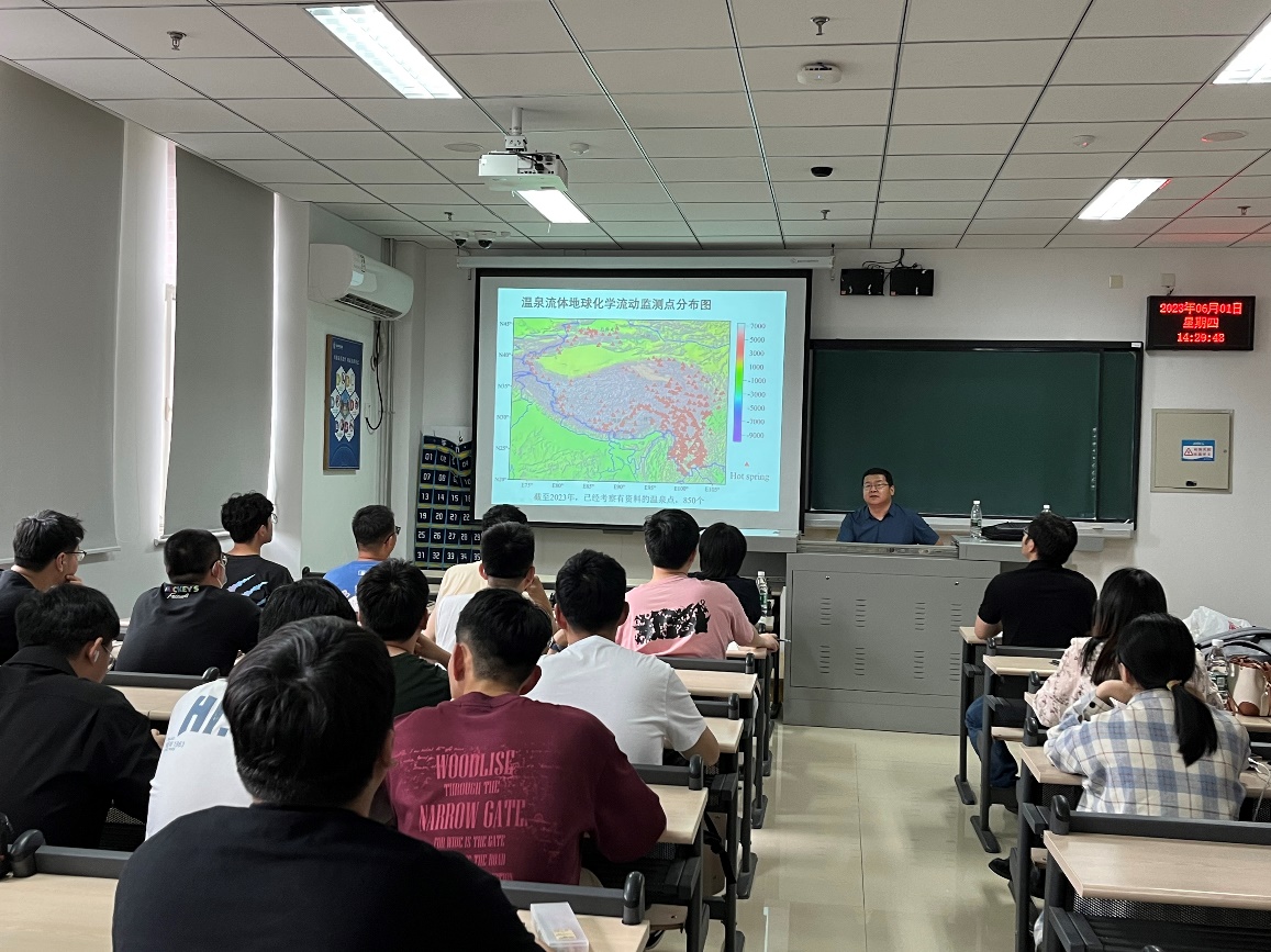 周晓成研究员从西南地区温泉水化学点分布出发,介绍了近年来其团队在充分利用西南地区良好观测条件的基础上,在各井点发现的地震短临前兆异常现象。并以土耳其科考为背景,介绍了在科考期间发现的土耳其两次大地震前后的短临前兆异常现象。最后,以温泉流体地球化学未来发展方向为结尾,详细介绍了中国地震科学试验场的建设规划及进展,告诉同学们,地震预测事业大有可为。
