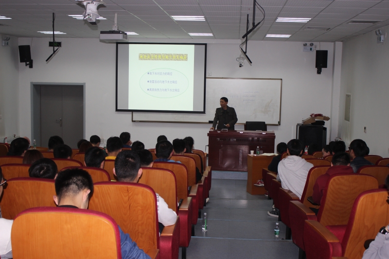 4月13日下午,副院长刘春平教授做题为《地壳应力作用与地下水文响应》的学术报告。本次报告为地震科学系专业培训及学术报告系列第三讲。地下水科学与工程专业、地球物理专业部分教师、本科生和研究生共90余人聆听了报告。