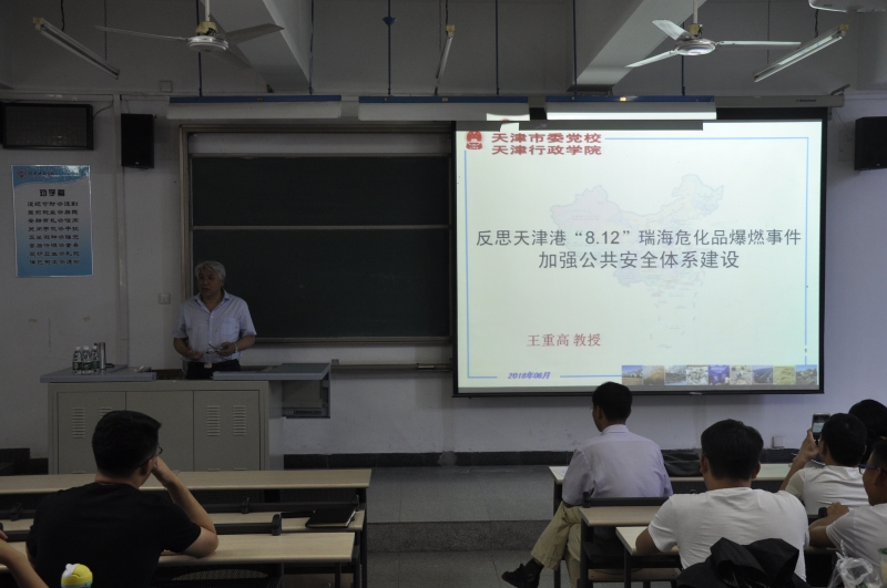 6月8日下午, 天津市委党校王重高教授应邀来校作“反思天津港“8.12”瑞海危化品爆燃事件,加强公共安全体系建设”学术报告。本次报告为经济管理系组织“纪念5.12汶川地震十周年系列报告”之“安全管理能力建设”专题内容。经济管理系公共事业管理专业师生现场聆听了报告。