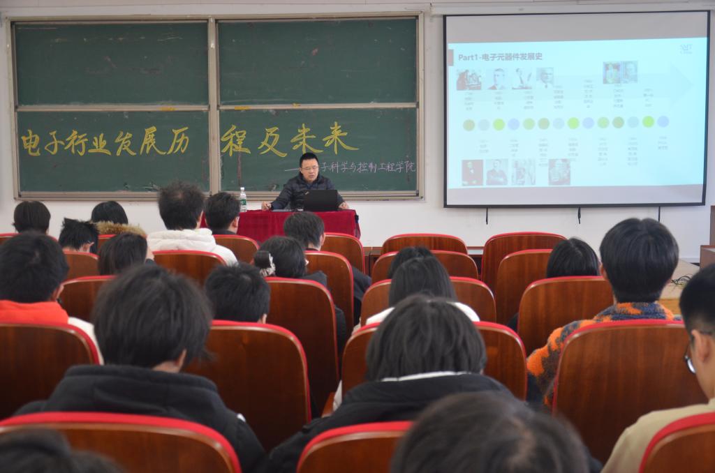 12月5日,受电子科学与控制工程学院邀请,汉王制造有限公司SMT经理、高级工程师余风胜来校作题为“电子行业发展历程及未来”的学术报告,共有300余名师生到场聆听。