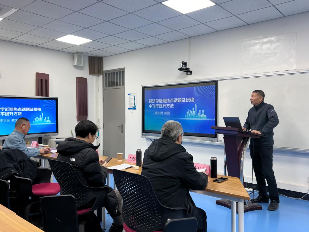 近日,应经济管理学院、灾害经济与金融研究中心和廊坊市应急物资保障与物流管理重点实验室邀请,金融经济学研究主编李华民教授和北京物资学院经济学院副院长王海军教授为学校师生作论文发表以及课题申报方面的主题报告。联合党委常委、副校长洪利出席报告会。经济管理学院部分教师和研究生参加。报告会由经济管理学院院长袁庆禄教授主持。