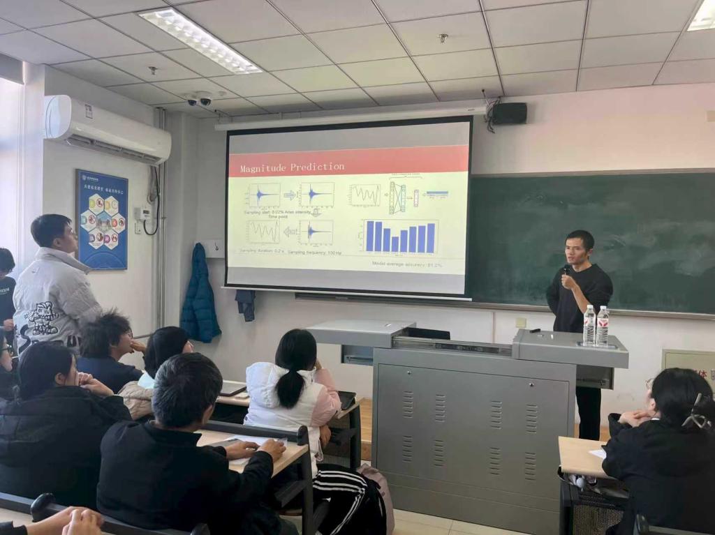 在互动交流环节,参会师生就地震工程中的智能算法设计、数据集构建及工程场景应用等问题踊跃提问,现场气氛热烈。此次报告不仅拓宽了师生在“地震+人工智能”领域的学术视野,也充分发挥了计算机科学与工程学院的河北省高校智慧应急应用技术研发中心和河北省物联网监控技术创新中心的学术交流与合作平台作用。下一步,学院将以本次学术交流为契机,围绕地震智能监测、震例智能分析、地震参数预测等方向积极布局地震AI相关研究与人才培养,推动与中国地震局相关科研单位在“AI+地震”领域开展更深层次合作。