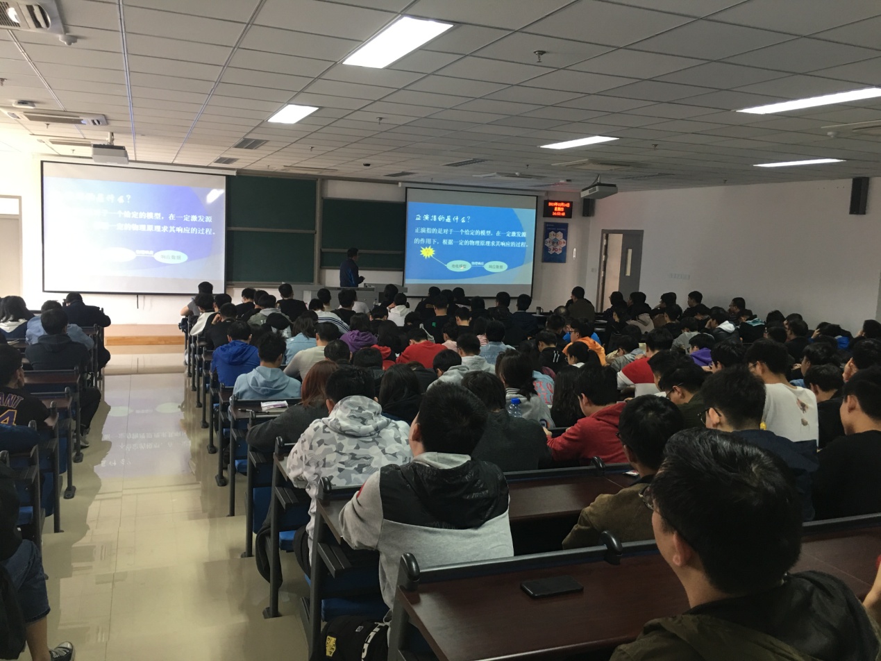 顾观文详细介绍了各种电磁法的基本原理、应用领域以及如何应用正反演方法解决实际问题,同时也讲解了数据处理与解译技术及技术方法,重点介绍了三维电磁探测技术研发整个过程和应用,从该方法的开发到数据管理,到数据成图技术,再到模型测试、有效性测试,最后到应用,整个开发、研究过程使同学们感受到了身临其境般的科研乐趣,也体会到了研究的严谨性,广大师生听后受到极大的启发和鼓舞。(撰稿、摄影:孙珍军;编辑:朱宏)