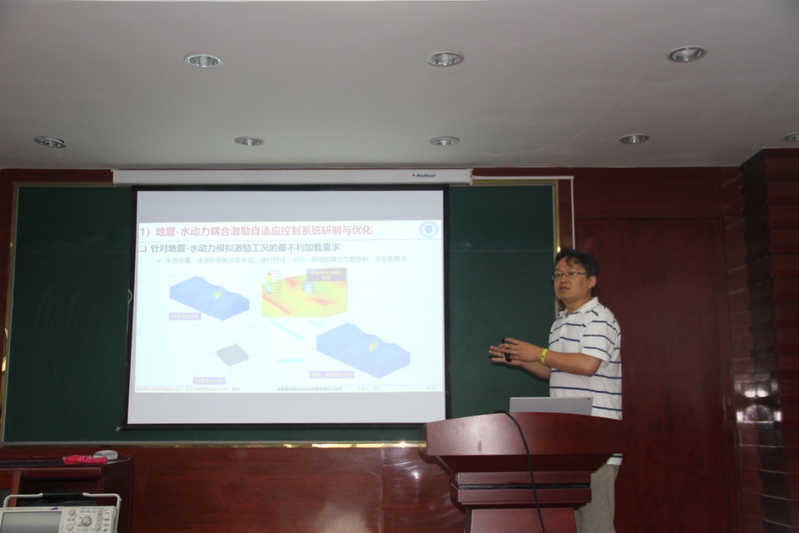 李教授介绍了天津大学水下地震模拟振动台建设情况,生动形象地介绍了振动台控制基本原理及天津大学在台阵控制领域取得的突破性成果,同时介绍了基于海浪/流与地震耦合作用下大跨度、长线型结构地震响应实验研究成果。报告会后,李教授同与会师生热烈讨论交流。(撰稿:周洋;摄影:王波;校对:左兰丽;编辑:井警龙)