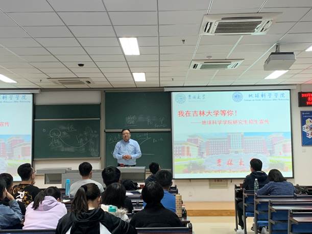 学术报告会后,张彦龙进行了研究生招生宣讲,详细地介绍了吉林大学地球科学学院的办学历史、学科排名、师资力量、研究生招生和奖学金政策等。