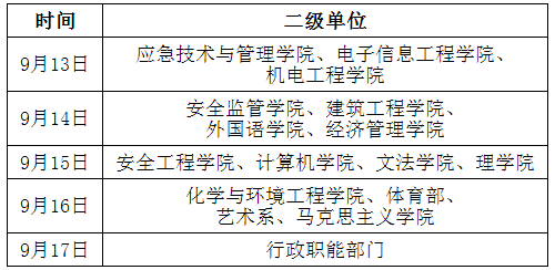 (一)各二级单位按以下时间安排组织参观,以新生为主,同时欢迎全校师生根据自己的时间自由参观。
