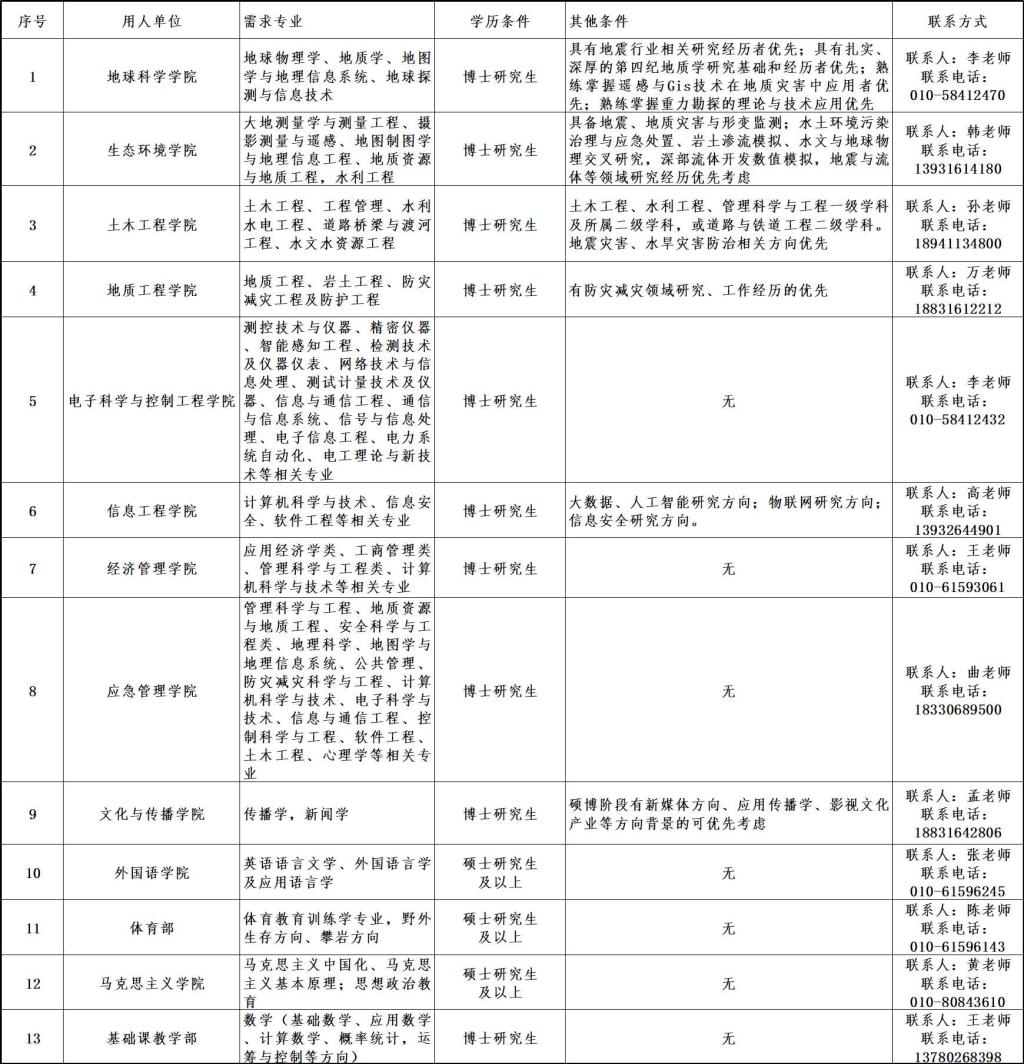 地址:河北省三河市燕郊高新区学院街465号防灾科技学院人事处