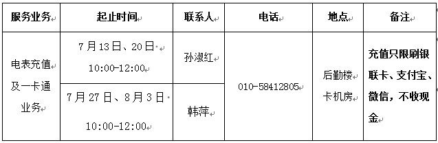 (二)家属区预付费电表充值预约及一卡通业务办理。