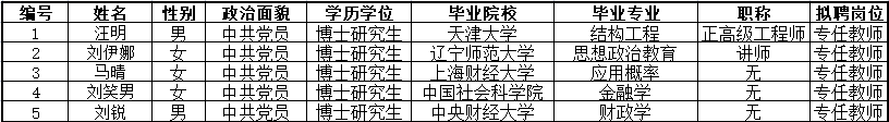 根据《事业单位公开招聘人员暂行规定》(人事部第6号令)、《防灾科技学院公开招聘人员暂行办法》(防科发人〔2018〕119 号)、《防灾科技学院2022年度事业单位公开招聘公告》,经考核,拟聘用汪明等5人为防灾科技学院工作人员,现予以公示。