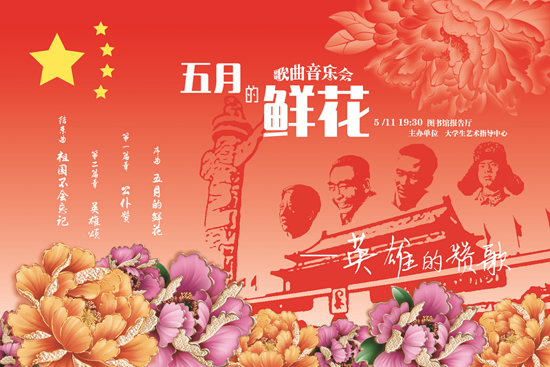 5月11日晚19:30在学院图书馆报告厅举行“五月的鲜花——英雄的赞歌”音乐会,欢迎届时前往观看。