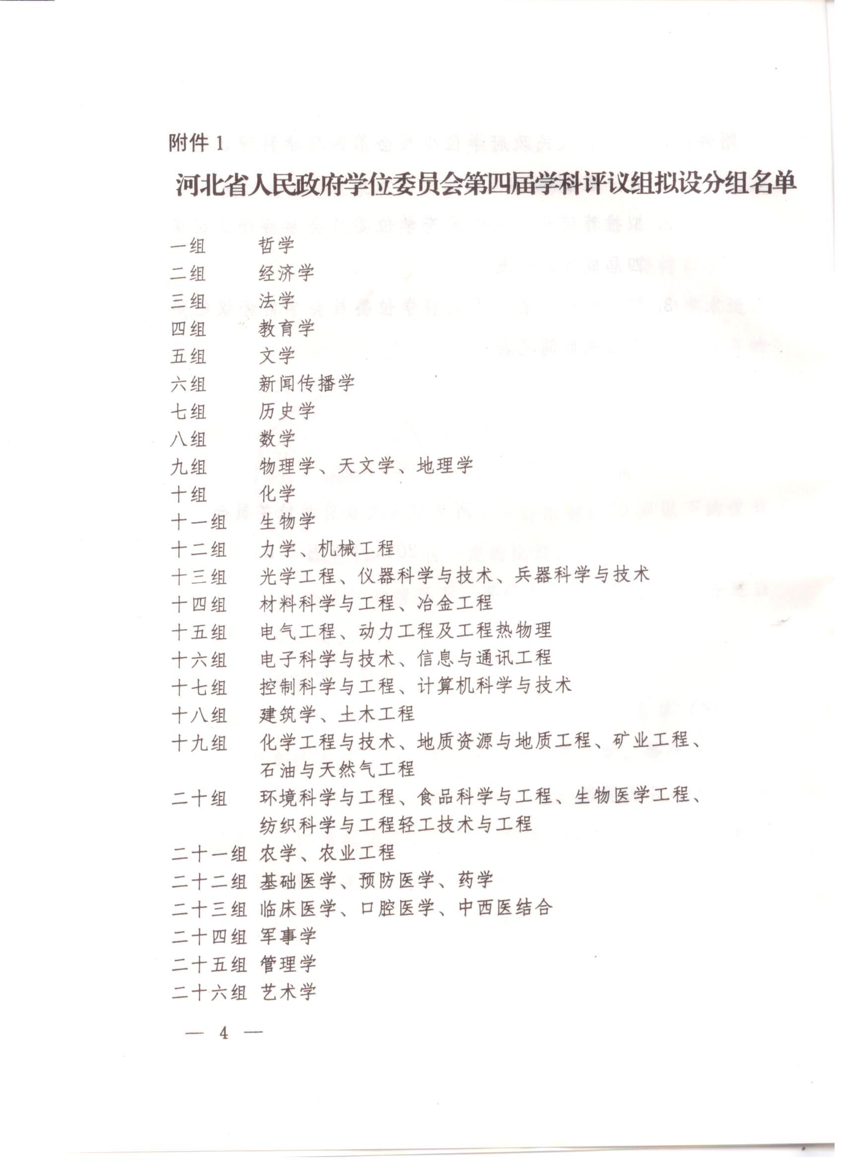 附件1:河北省人民政府学位委员会第四届学科评议组拟设分组名单