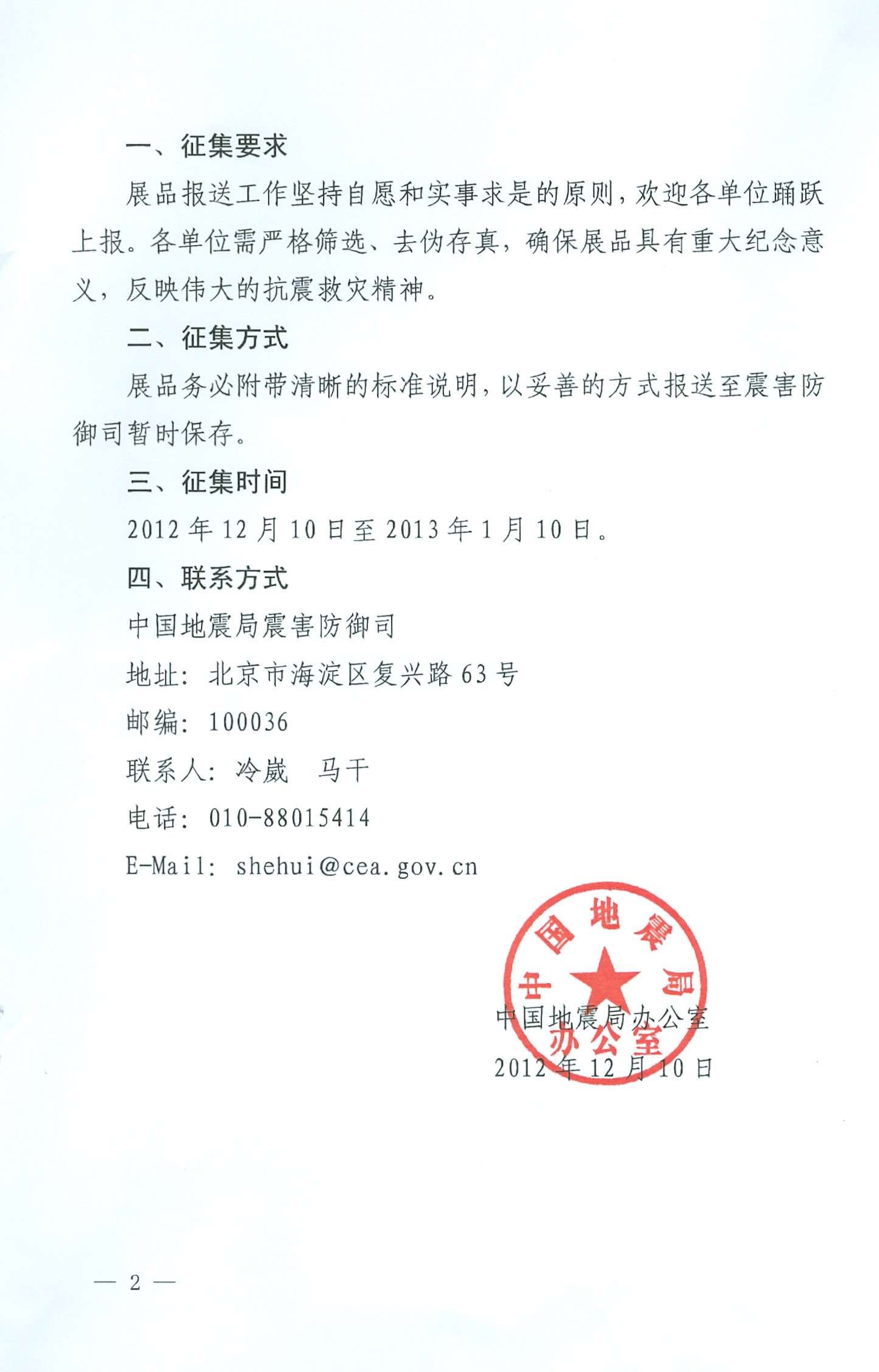 各部门、单位请将符合征集内容的资料、实物等加以整理,登记汇总后于2013年1月7日前报送学院办公室。