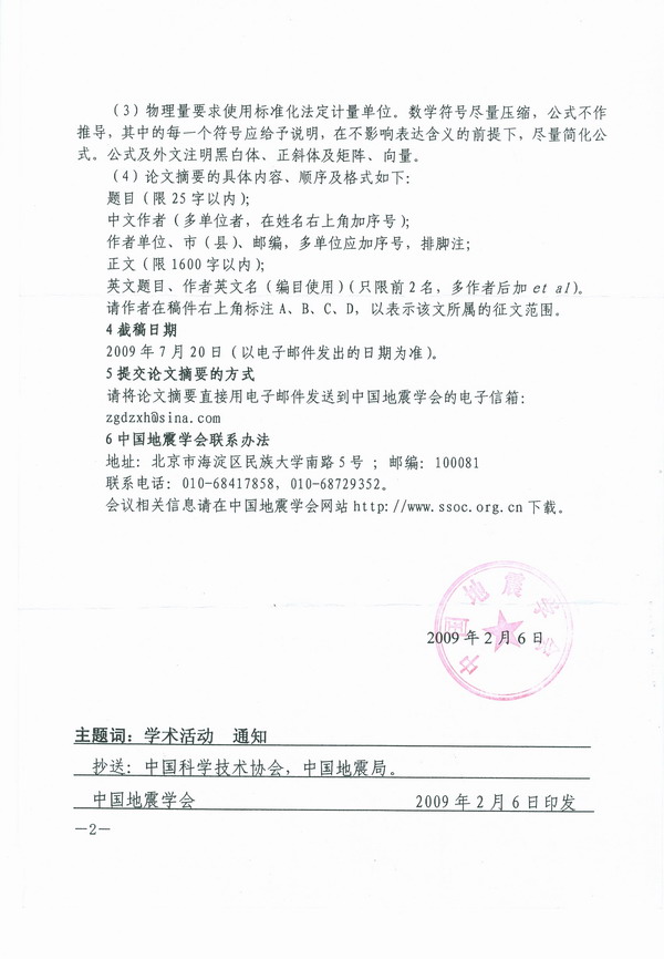 关于举办中国地震学会成立30周年学术研讨会的征文通知