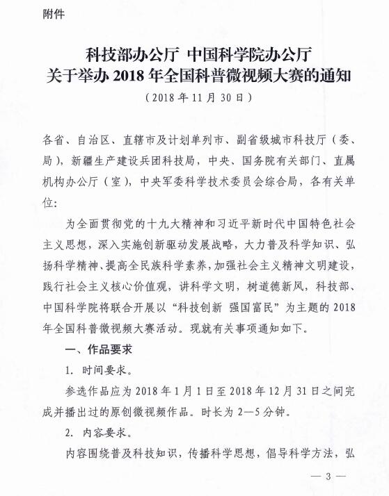 关于推选2018年全国科普微视频大赛参赛微视频的通知