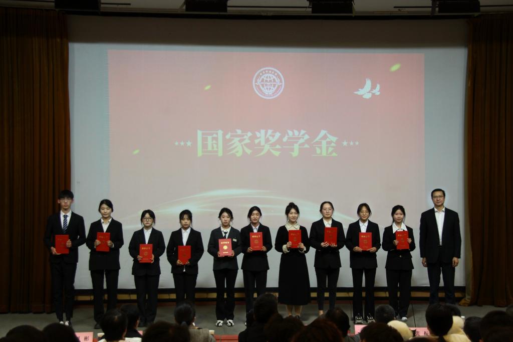 大会在庄严的国歌声中拉开帷幕。学生工作处处长张伟宣读了表彰决定。与会领导和老师们依次为获奖的先进集体和优秀学生代表颁奖,并同大家合影留念。年度人物朱怡诺同学代表获奖同学发言。
