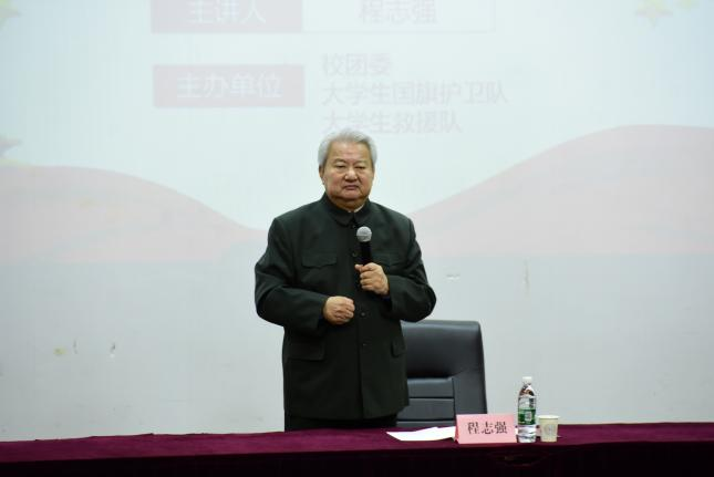 11月21日,原三军仪仗队大队长程志强先生应邀来校指导大学生国旗护卫队和大学生救援队训练并作专题报告。
