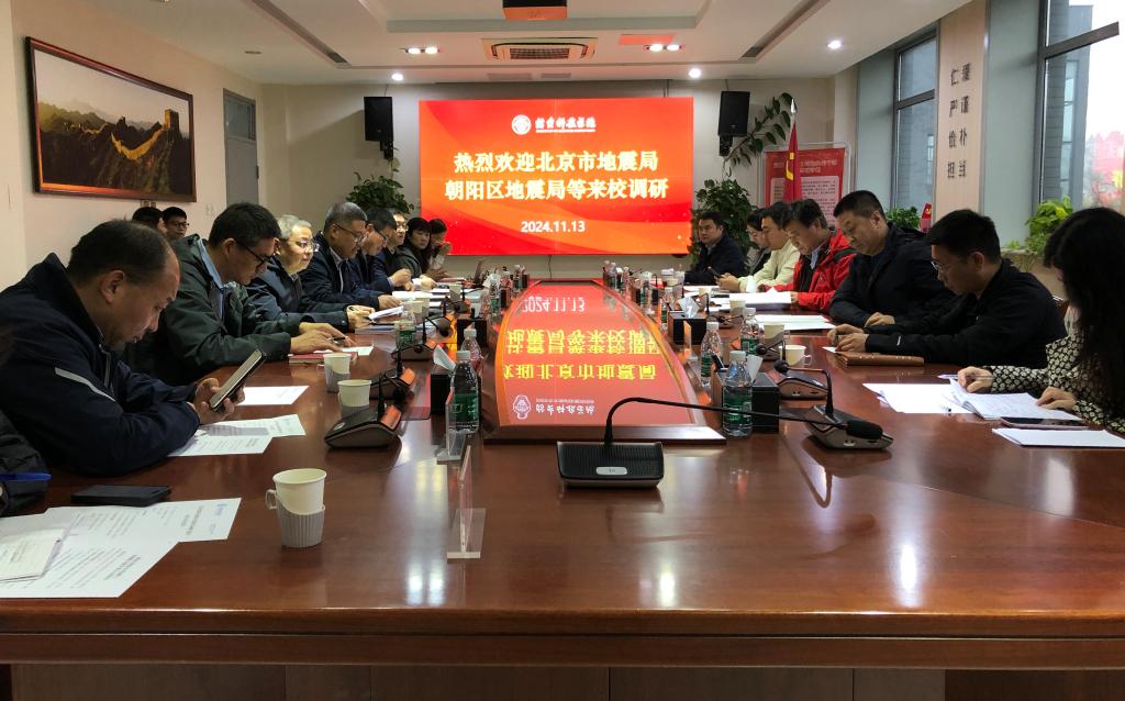 11月13日下午,北京市地震局震害防御处处长张敬军,朝阳区地震局党组书记、局长关进国一行来校开展调研。联合党委副书记、校长任云生会见了张敬军、关进国一行,联合党委常委姜纪沂主持交流座谈会。