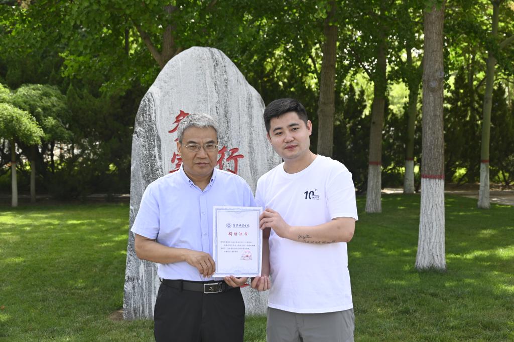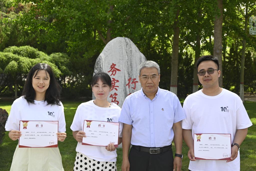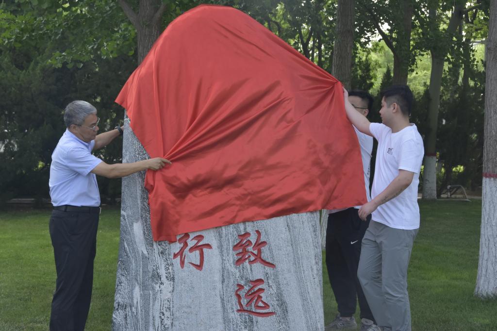 任云生与校友代表拱兴乾、穆如旺共同为捐赠的景观石揭幕,并向校友颁发捐赠证书和校友联络员聘书。校友代表拱兴乾发言,他重温了十年前在校学习生活的美好时光、师生相处的浓厚情谊,对母校的培养表示感谢,并表示将一如既往关注和支持母校建设,为母校发展作出更多贡献。