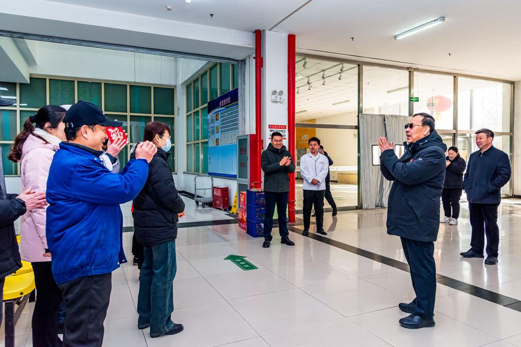 卜昌森一行走访了行政楼(集合了机关、兴安苑、离退休办公室值班人员),信息楼指挥中心大厅、承基楼一层监控室,后勤绿化环卫、动力站、学生公寓及食堂,保卫处、校医院等值班值守人员。走访慰问中,卜昌森首先代表学校向仍然坚守在工作一线的干部职工表示感谢,对他们的辛勤付出和敬业精神表示充分肯定,悉心询问他们春节期间的工作情况和生活安排,特别叮嘱注意防范各种安全事故,希望他们继续发扬无私奉献精神,认真踏实做好值班值守工作,为春节期间校园平安稳定贡献力量,并送上新春祝福和慰问品。