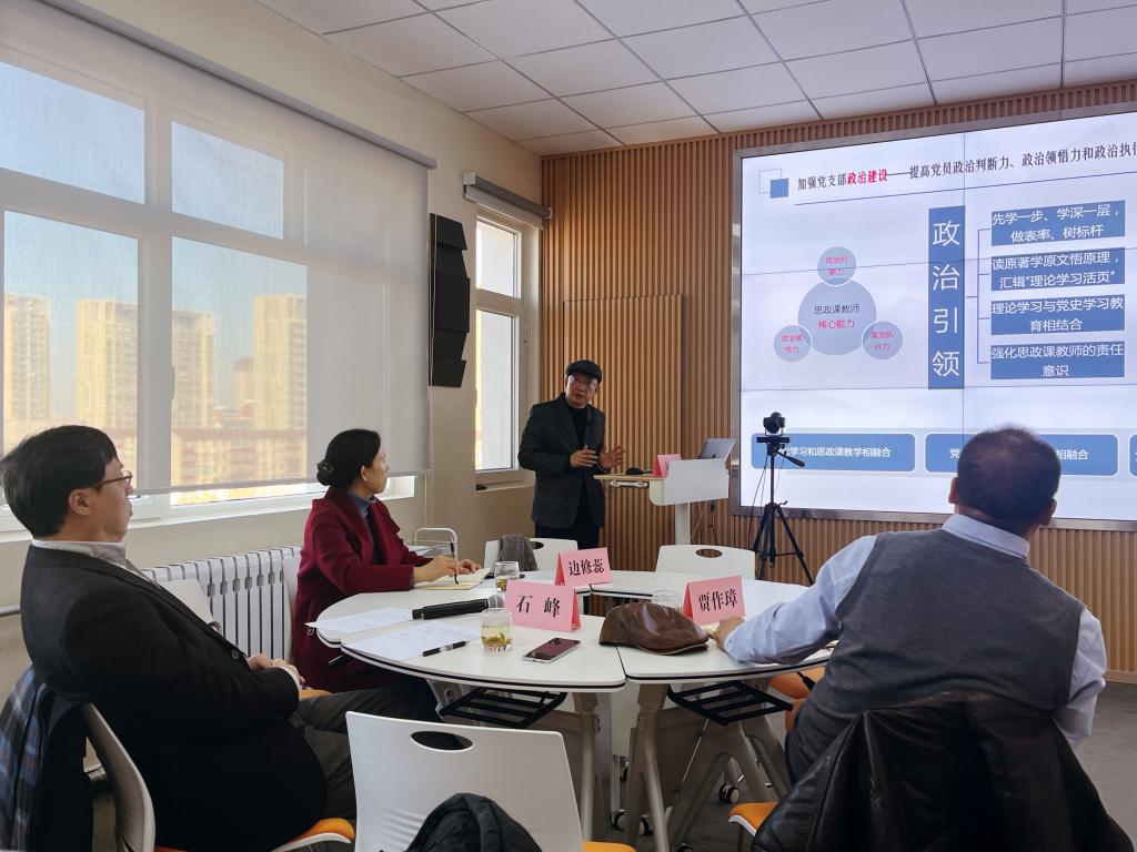 马克思主义学院院长、党支部书记李君从学院建设、课程建设、队伍建设以及党建和业务融合等方面,全面汇报了2023年学院党建和业务工作,并分析了存在的问题,提出了解决问题的对策建议。