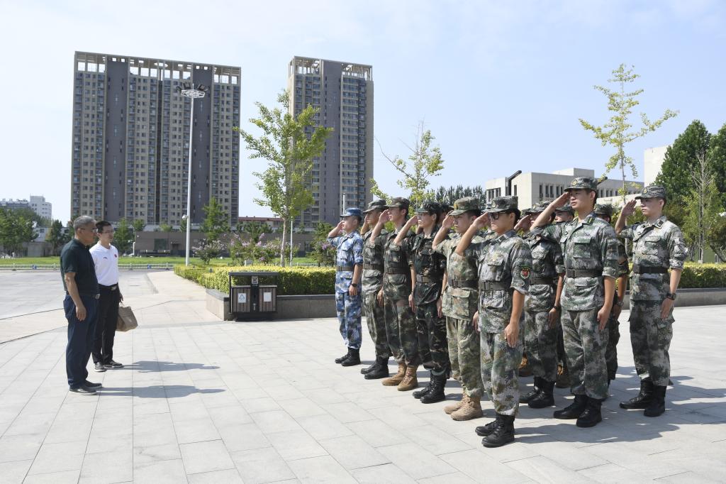 在军训现场,校领导看望了正在参加军事训练的2022级学生,慰问了承训的教官和带训工作人员,详细了解了军训的相关安排和进展情况,观摩了正在进行的科目训练。任云生对同学们在训练中不怕苦不怕累,展现出高昂士气表示高度肯定,并希望同学们在训练中增强集体意识、纪律意识,在确保安全和身体健康的基础上提高身体素质,养成过硬的作风和良好的生活习惯,以饱满的精神状态顺利完成各项训练任务。
