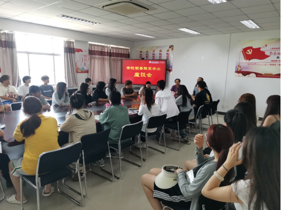 6月15日下午,联合党委常委何本华与所联系班级221011班全体学生开展座谈交流。座谈会由外国语学院党总支书记王建富主持。