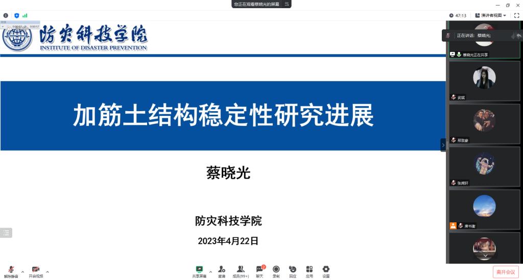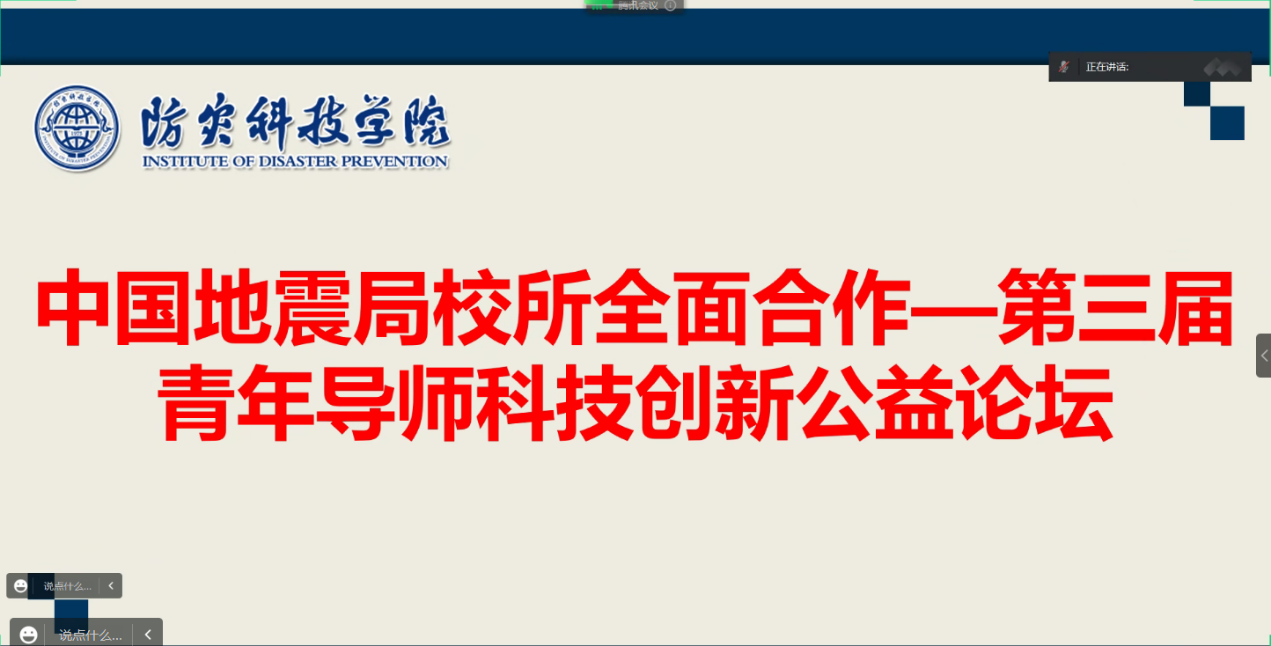 为进一步落实《中国地震局校所全面合作三年行动方案》,充分发挥校内外专家对研究生科研兴趣的示范引领作用,促进科教融合和产教融合,提升研究生培养质量,4月22-23日,由我校发起主办的第三届青年导师“科技创新”公益讲座在线上举行。