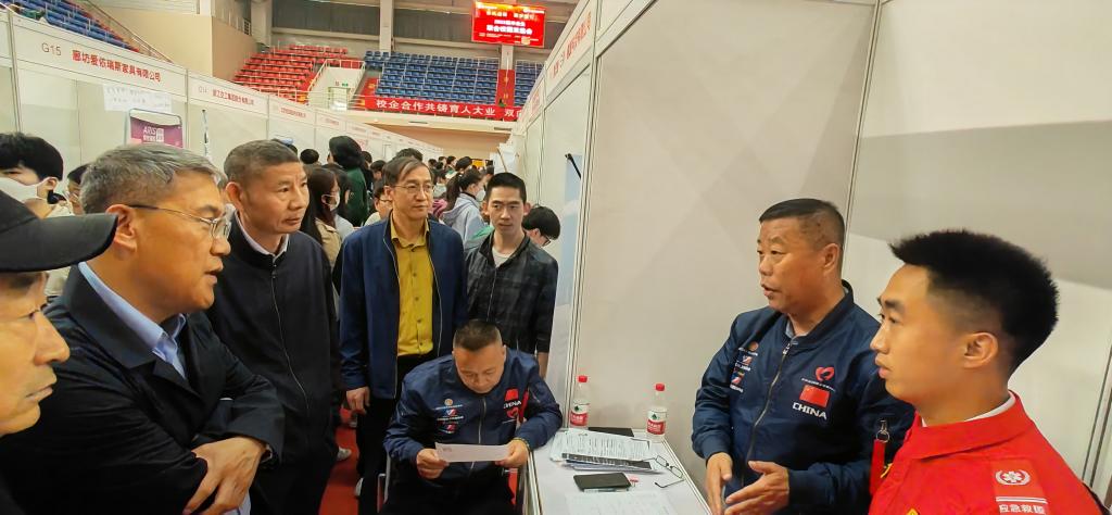 联合党委副书记、主持行政工作副校长任云生,联合党委常委、副校长洪利出席了双选会,与招聘单位工作人员和毕业生们亲切交谈。任云生详细了解了参会单位情况和2023届毕业生就业工作开展情况,强调学校要继续与用人单位畅通渠道,加强合作,优化服务。同时要强化目标导向,加强就业育人,引导毕业生树立正确的就业观,加强对毕业生精准指导与帮扶,帮助毕业生顺利就业,尽早就业。洪利与工作人员进行交流,了解企业招聘岗位需求以及人才待遇等情况。同时指出要加强政校企之间的合作,深入开展访企拓岗促就业行动,结合学校学科专业特点,组织小而精、专而优的专场招聘会,促进学生精准就业。