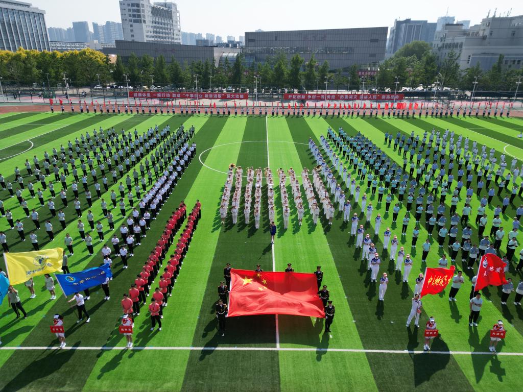 开幕式上,任云生代表学校致欢迎辞。学校国旗护卫队、大学生管乐团、刀旗方队、裁判员代表队以及各参赛单位方阵依次通过主席台接受检阅。各代表队统一着装、口号嘹亮、步伐整齐、气势昂扬,展现出蓬勃向上的精神面貌,现场气氛热烈而振奋。升旗仪式结束后,13支代表队共同进行了第九套广播体操会演,队员们动作标准规范、节奏协调一致、姿态舒展大方,展现了良好的团队风采。随后,学校800名女大学生表演了大型团体操《灯火里的中国》,舞姿翩跹,红扇翻飞间图案变换,以青春之姿献礼盛世中国。
