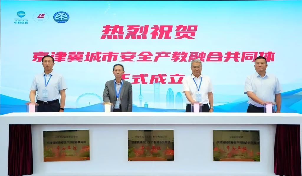 京津冀城市安全产教融合共同体项目经北京市教委批准,于2024年11月成立,由北京劳动保障职业学院、华北科技学院、中安在线(北京)科技有限公司共同牵头,成员单位覆盖北京、河北、天津等地区,涵盖普通高等学校、高等职业学校、中等职业学校、科研机构、上下游企业、行业组织及其他单位近30家,形成“政、校、企、行、研”多方参与的合作格局。共同体的成立,将为我校安全与应急类相关专业完善人才培养体系、拓展实习实训基地、拓宽就业渠道以及协同创新平台建设等奠定良好基础。