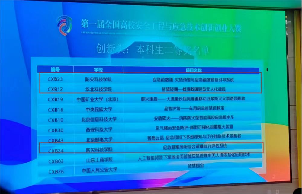 近日,第一届全国高校安全工程与应急技术创新创业大赛总决赛在北京圆满落幕,应急技术与管理学院应急智慧学习工场学生团队(邓宇浩、赵詠熳、马雨阳、回思雯等)的四个创新类项目凭借出色表现脱颖而出,斩获一等奖一项和二等奖三项。团队成员以扎实的专业素养、卓越的创新思维和紧密的团队协作,在众多强劲对手中崭露头角,充分展现了我校学子的风采。