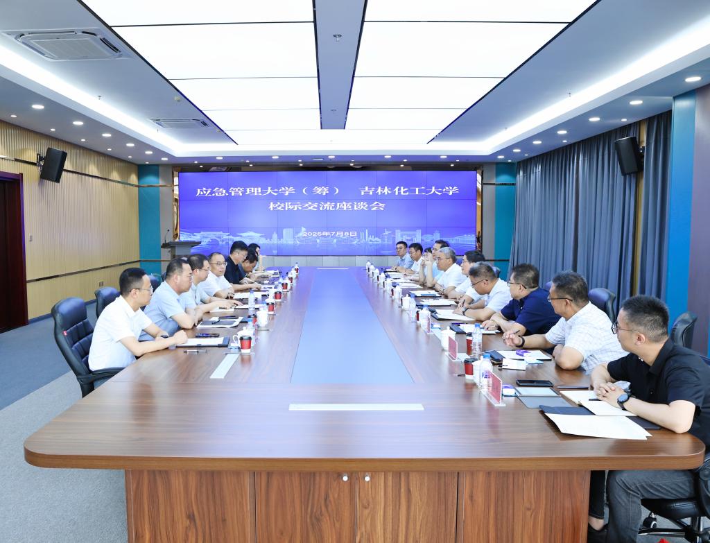 艾学忠对任云生一行到访表示热烈欢迎。他指出,两校在服务国家战略需求、推动高等教育高质量发展方面使命相通,尤其在安全工程、化工安全、应急技术与管理等领域具有天然互补性,合作前景广阔。任云生介绍了学校办学历史、学科专业特色及大学筹建进展,希望以此次调研为契机,推动两校在产学研协同创新、学生培养等领域深度合作,建立常态化交流机制,推动资源共享、优势互补。孙大志分享了吉林化工大学更名工作的经验做法。