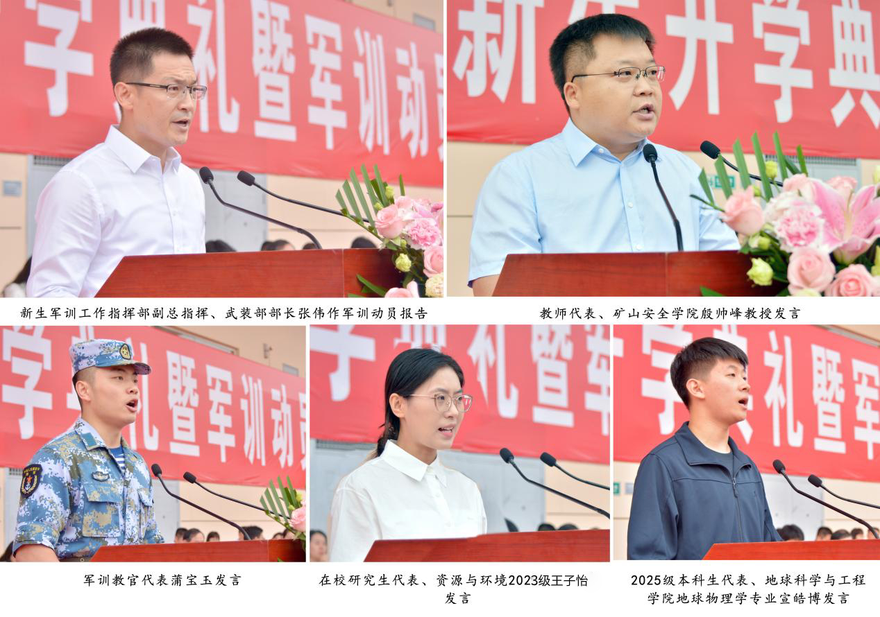 上午8时30分,开学典礼在庄严的升国旗、奏唱国歌仪式中拉开帷幕。2025级本科生代表、地球科学与工程学院地球物理学专业宣皓博同学,在校研究生代表、资源与环境2023级王子怡同学,教师代表、矿山安全学院殷帅峰教授先后发言。