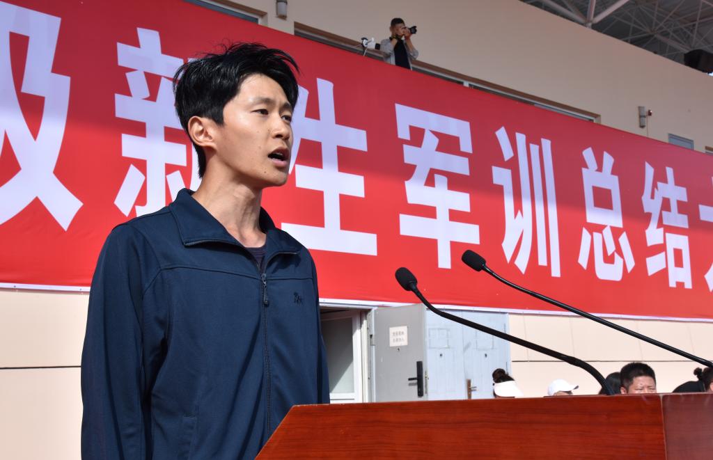 军训团团长、武装部副部长赵启峰宣读了《关于表彰2025级新生军训工作先进集体和优秀个人的决定》;与会领导共同为军训先进连队、军训优秀教官和优秀学员代表颁奖;十一营五连应急技术与管理专业苏皓伦同学作为2025级军训优秀学员代表发言,他回顾两周军训期间留下的宝贵回忆,总结军训过程中同学们的收获与成长,并表达了责任担当、砥砺奋进的决心和意志。