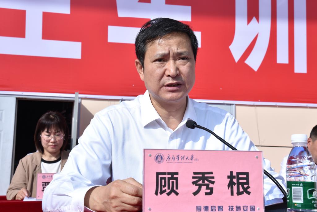 军训总指挥、联合党委常委、副校长顾秀根作军训总结讲话。顾秀根充分肯定了过去两周的军训成果,他指出,军训是一堂鲜活的“大思政课”;是一堂深入的国防教育和应急素养必修课;是一堂真切的作风训练和团队建设实践课,通过军训课堂,同学们获得了精神上的洗礼和体魄上的锤炼。顾秀根期望同学们要增强国防观念、提升应急素养和忧患危机意识,弘扬爱国主义精神、传承红色基因、提高国防素质和应急能力;要保持军训期间养成的优良作风和自律习惯,既要注重行为规范、也要做好宿舍安全整洁,全方位提升校园安全文明水平;要秉持“厚德启智,扶危安国”的校训,在今后的学习生活中,持续塑造优良班风和学风,为学校内涵式高质量发展贡献青春力量。