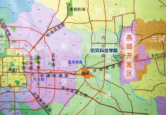 2.从北京南面来校,进京后经东四环、东五环换到京通快速路,或者经东六环换到通燕高速(原京哈高速),再按第一条路线行使即可。
